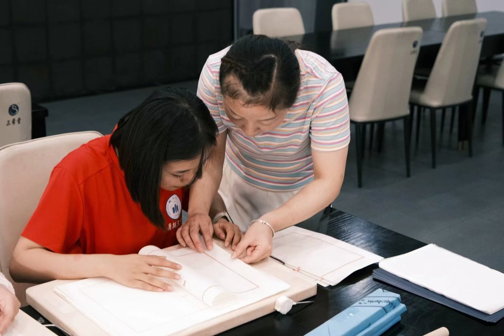 图为传承人张云芳指导实践团队成员制作线装书。孙博 供图