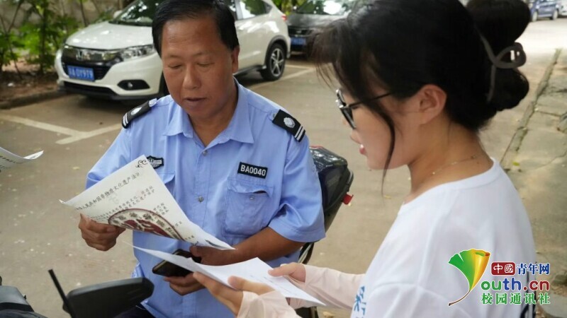 图为实践团队成员向路人分发法律宣传单。刘艺文 供图