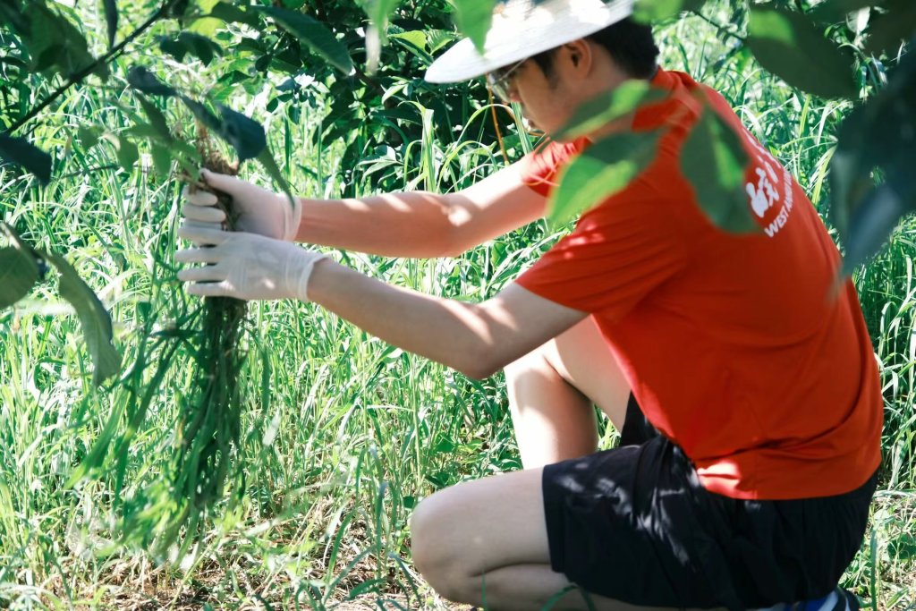 图为实践团队成员帮助当地村镇清理杂草。潘紫欣 供图