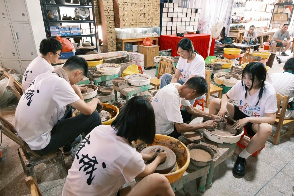 图为实践团队在老师傅指导下制作陶器。王奕哲 供图