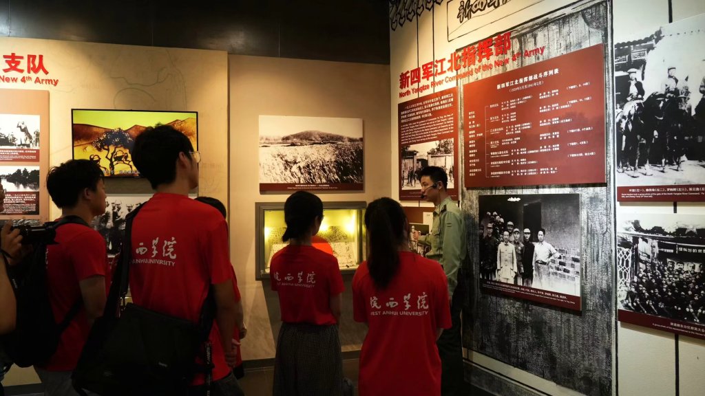 图为实践团队在新四军旧址处聆听讲解员介绍。简迅 供图